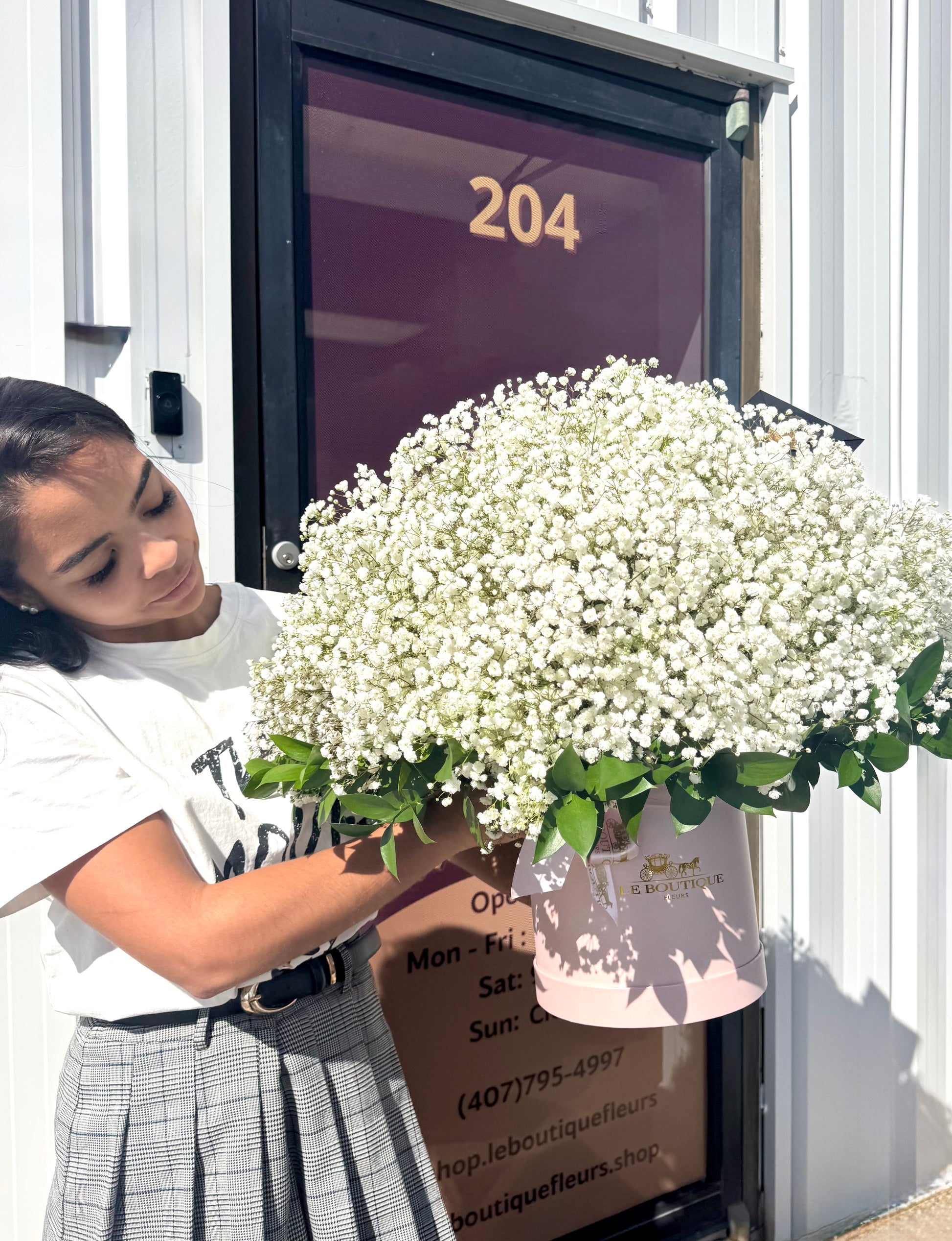 This huge baby's breath arrangement is made with at least 9 bunches of baby's breath, making anyone feel the sky closer than it really is