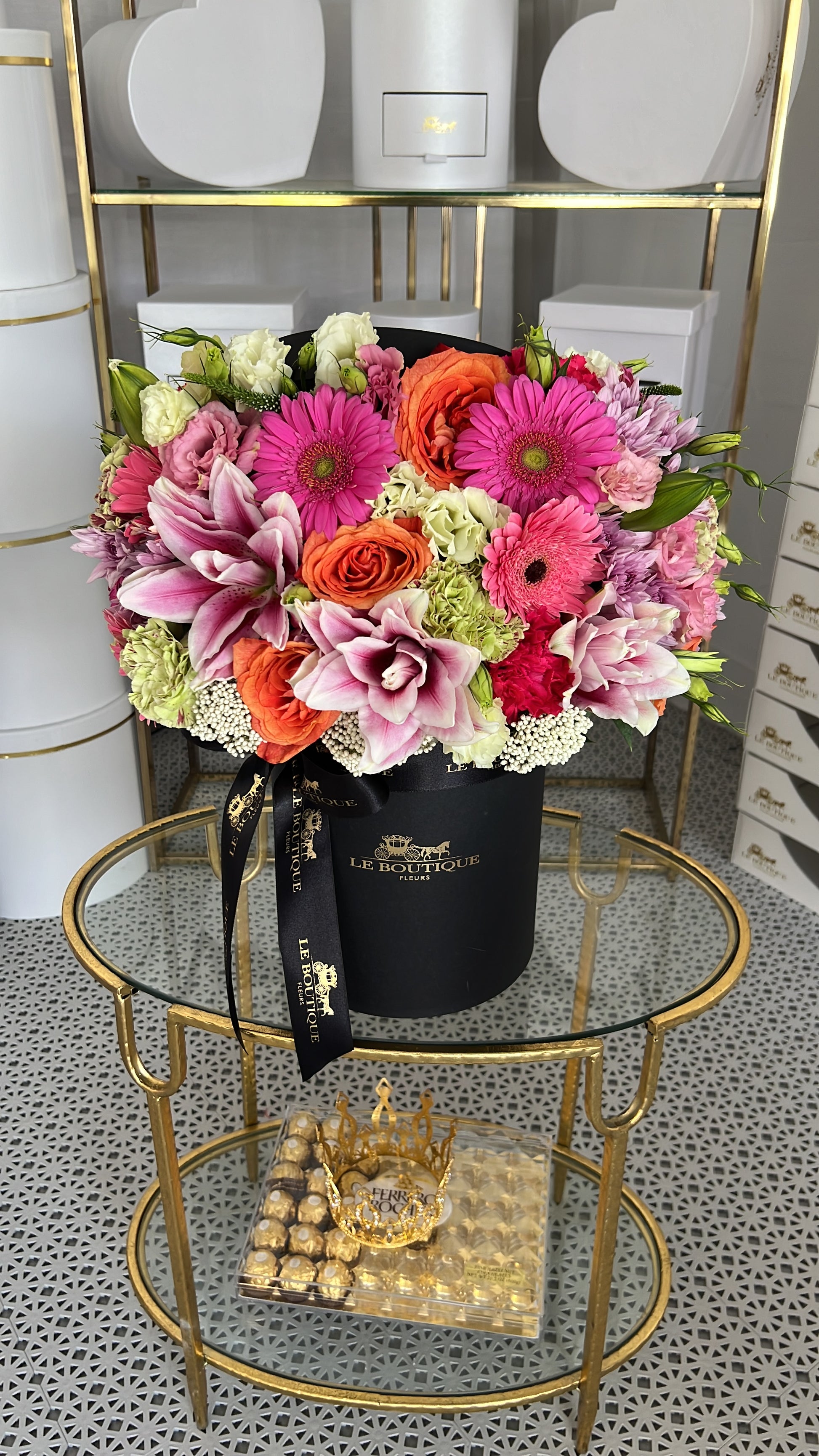 This arrangement is made with mixed seasonal flowers that was specially selected by our designer’s in a large box with a lid in the back.